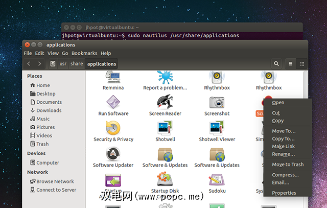 首先,打开终端。然后,键入以下命令以超级用户身份在文件浏览器中打开您的应用程序文件夹: