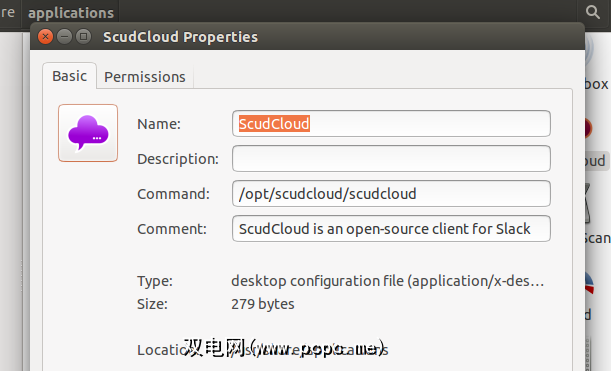 在打开的窗口中,找到Scudcloud。右键单击它,然后单击“属性"。您会看到一个概述应用程序的窗口。