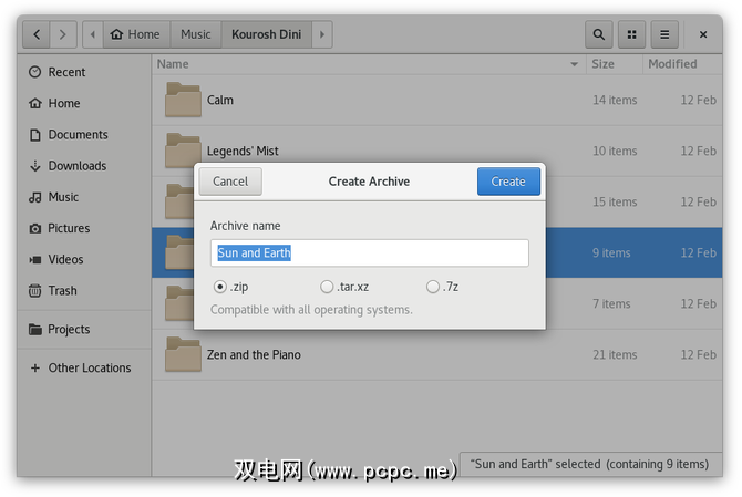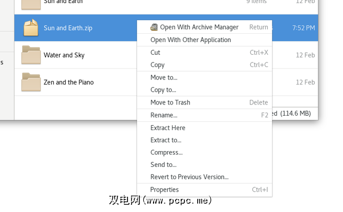 如果您使用的是Ubuntu ,Fedora或Debian,您很有可能正在使用GNOME。在该界面中,右键单击要压缩的文件或文件夹,然后选择压缩。将出现一个窗口,您可以选择几种格式。 ZIP是其中一个。