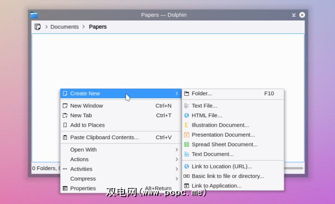 unzip photos.zip -d /home/user/Pictures/pics在只需右键单击并选择新建>文件夹,即可简单地在KDE Plasma桌面上创建目录。