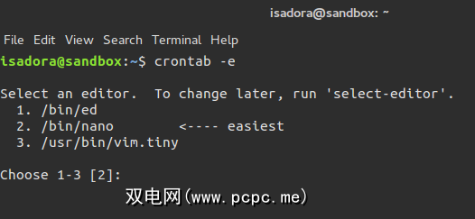 听起来很简单:安排任务,只需将它们添加到您的crontab中。由于crontab是一个特殊的配置文件,因此不建议手动对其进行编辑。而是使用 crontab -e 命令。要编辑root或其他用户的crontab,请以管理特权运行命令,并在-u选项后添加其用户名: