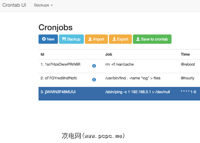 您应该了解其他解决方案,例如Crontab-UI和Minicron。它们更适合于管理多台机器和cron作业的用户,其最酷的功能之一是基于Web的界面。
