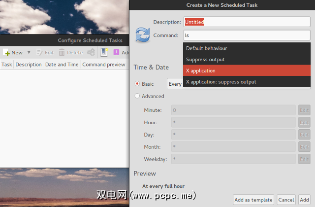 如果您喜欢GNOME,那么GNOME Schedule非常适合您。该方法是相似的,尽管预期界面略有不同。它提供了用于细粒度修改的高级模式,并带有一个面板小程序,您可以从中直接管理任务。