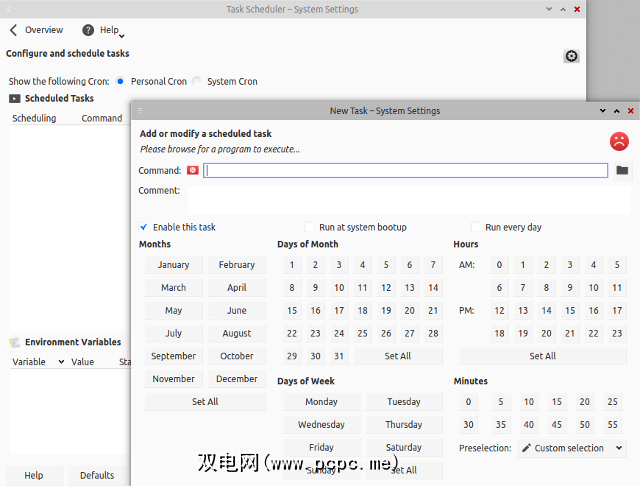 绝对不需要。 KDE用户可以使用KCron计划cron作业,可通过系统设置>任务计划程序模块进行访问。凭借简单易用的界面,您只需单击几下鼠标即可选择和调整所有内容,因此KCron很高兴使用。