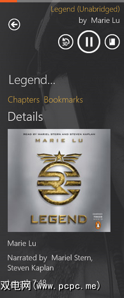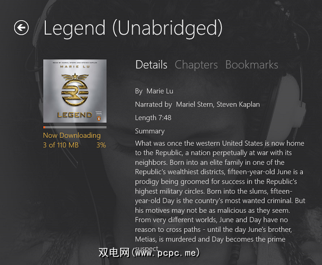 有声读物往往会占用大量存储空间。 Legend的容量为110MB,已经是一本较小的书,并且仅以平均质量而不是卓越的质量进行下载。如果您可以与Windows 8设备建立任何类型的3G或4G数据连接,则可能需要切换到WiFi进行大量下载。