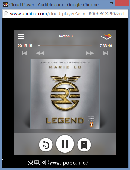 您可以通过访问Audible库并单击以访问Cloud Player。玩任何您购买的书。它会在另一个窗口中打开并弹出,并具有非常基本的控件,如下所示。