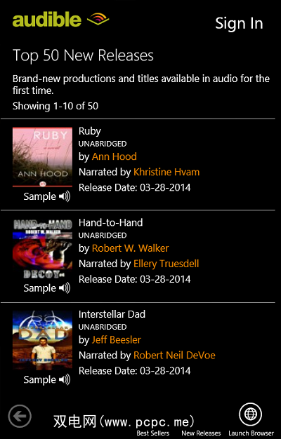 访问Audible的网站进行免费试用。并开始使用,也可以下载Audible Windows 8应用并按照那里的设置进行操作。如果您已经有一个Amazon帐户,但没有Audible帐户,则系统将要求您使用Amazon帐户登录,但是您仍然会收到两本免费的有声读物,因为从技术上讲,您是在打开一个新的Audible帐户并加入