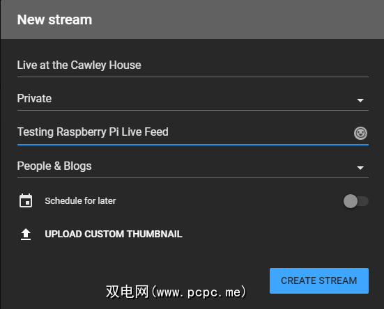 您可能已经拥有一个YouTube帐户。如果您使用Google Mail,则有一个可供您激活的帐户。您将需要一个特殊的URL,用于将Raspberry Pi摄像机捕获的素材引导到YouTube。