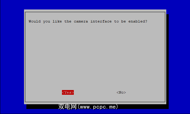 使用箭头键选择启用摄像头,点击输入,然后选择是。系统会提示您重新启动。当您的Pi重新启动时,输入: