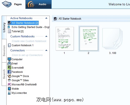 在Livescribe Connect中,您可以设置到不同平台的连接。您可以使用该软件将工作发送到计算机,电子邮件,Evernote,Facebook,Google Docs,Google Sites,Microsoft OneNote和MyLivescribe帐户。