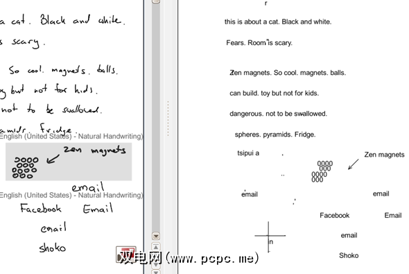 为了帮助程序,您可以指定页面的哪些区域是形状或手绘图,因此它不会尝试弄清楚那些。一旦这样做,即使我的笔迹不太清楚,OCR也会非常准确。不过,这与我男朋友的左撇子笔迹有更多问题。