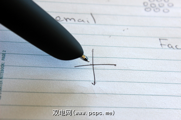 尽管本文不足以介绍Echo Smartpen上的每个很酷的功能,但是有几个我必须强调非常巧妙的技巧。第一个,也许是最有用的一个,是能够在任何地方创建上述导航十字的功能。无论您在圆点纸上的任何位置,都只需画一个与打印纸相同大小的加号,然后使用它来访问和导航笔的菜单。