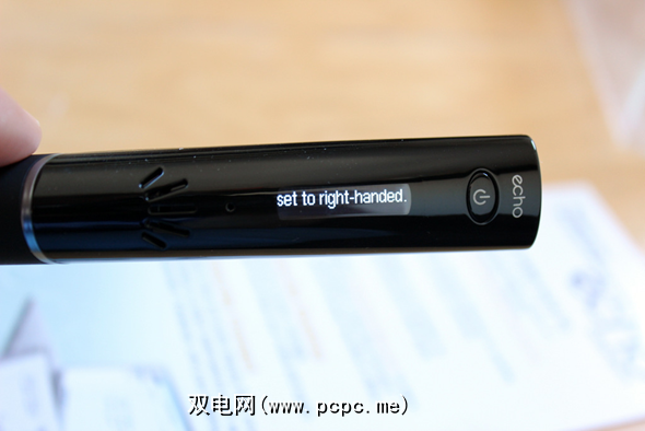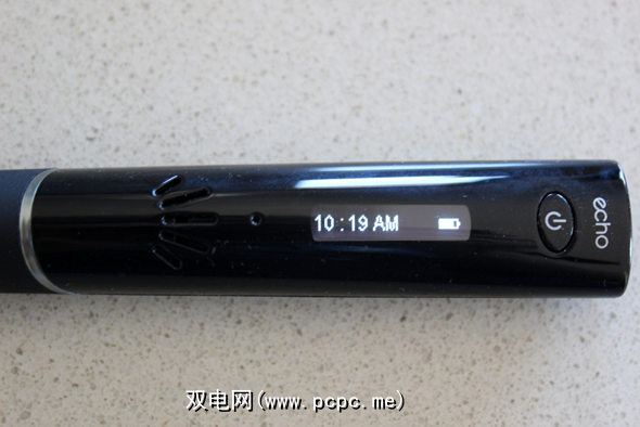 Echo Smartpen有一个按钮-电源按钮。其余所有操作都通过在圆点纸上的特殊按钮上点击笔来完成。看着笔,您会看到经常使用的OLED显示屏以及内置的麦克风和扬声器。这是笔上的实际一半。下半部主要是一个橡胶手柄,尽管它的宽度比普通笔可测,但仍使Echo易于握住和使用。