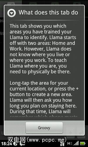 位置是Llama生活中不可或缺的一部分,但它无需使用GPS或WiFi(至少默认情况下)就可以做到。它通过检查电话正在与哪些信号杆(“单元")进行通信来进行工作。之所以如此出色,是因为它不占用任何额外的电池电量,并且提供了相当可靠的位置信号,尤其是在茂密的城市丛林中。渴望入门,我迅速点击了“ Groovy ",然后点击了列表中的第一个条目,即“ Home ":
