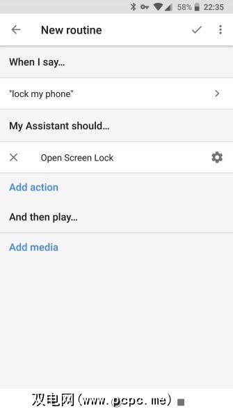 在Google助手中,您可以设置自定义命令和命令链,称为“例程"。通过“例程"设置自定义语音命令可扩展“助手"的功能。锁定手机只是使用此功能的一种方式。