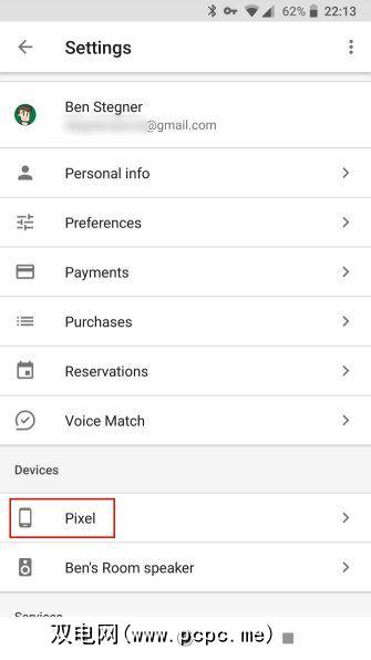 您可以通过打开Google助手并访问其设置来完成这两项操作。为此,请点击Google Assistant界面中的蓝色抽屉图标。选择三点式菜单按钮,然后选择设置。在设备标题下,点击您的手机。在此处启用使用语音匹配进行访问和使用语音匹配解锁。