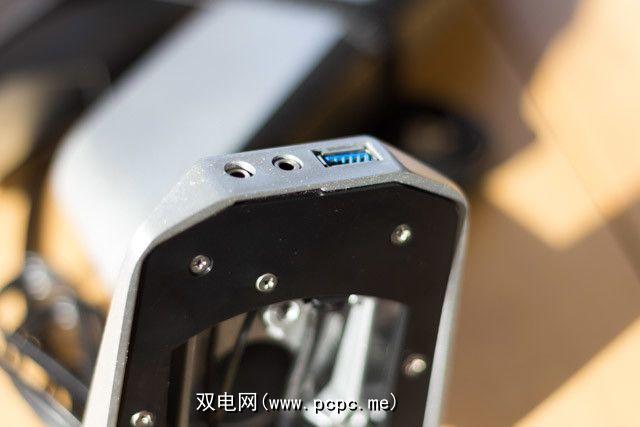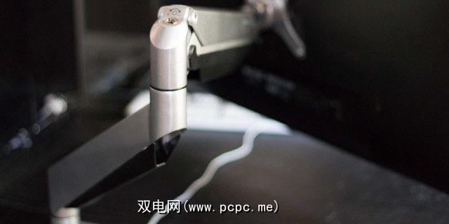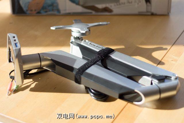Loctek D7A安装座的主体是光滑的粉末涂层的铝,臂下方带有黑色塑料电缆桥架。底座上有不少于4个接头,还有可上下移动的可调式气弹簧。