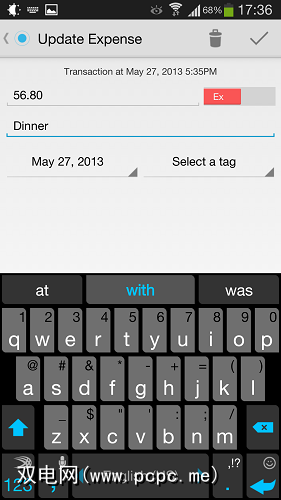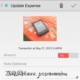 我喜欢One Touch Expenser的地方是每笔费用都有很少的字段,并且大多数都是可选字段。请注意金额旁边的“ Ex"滑块:您还可以使用One Touch Expenser记录您的收入。