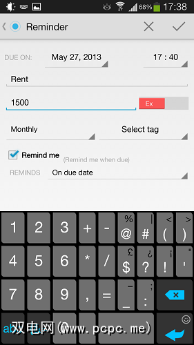 一键式支出服务还可以帮助您记住经常性费用。假设您的租金是每个月的27号到期: