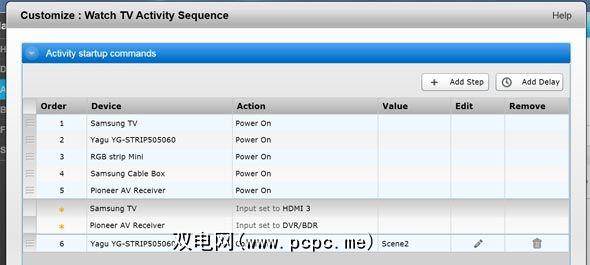该软件附带了一些预编程的标准活动,例如看电视,但您可以添加自己的活动,包括自定义图标。例如,我的舞会活动与玩游戏几乎相同,只是它将RGB灯变成了彩色闪光灯模式。标准活动包括一个向导,它会浏览诸如“应将电视设置为哪个输入?" 之类的设置,但是您也可以深入研究任何活动所涉及的特定命令链,以进一步对其进行自定义。