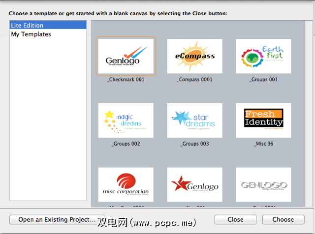 Logo Design Studio包含很多可编辑的形状和对象以从头开始创建徽标,但其中还包含许多入门和构建模板。