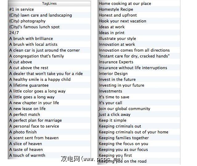 Logo Design Studio还包括一个漂亮的右侧抽屉,上面有一百多个标语,可以用作您的企业或网站口号的创意。自然,您将需要运行搜索并检查其他公司或组织是否使用相同的标语。只需将选定的标语拖放到画布上即可轻松更改其字体样式和颜色。