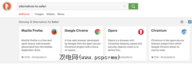 搜索Twitter用户名,您会看到生物。搜索流行软件的替代产品,您将看到替代产品的结果。