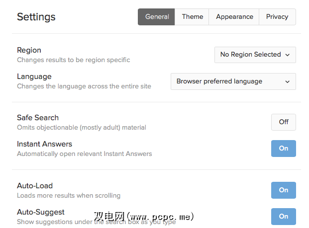 DuckDuckGo不会不要假设您有任何事情,包括您希望搜索结果看起来和行动如何。如果您想关闭即时答案功能,则可以。如果您想更改字体,背景颜色和使用的度量单位,则可以。您甚至可以将Favicon和来自Web of Trust的图标添加到搜索结果-需要将浏览器扩展添加到Google。
