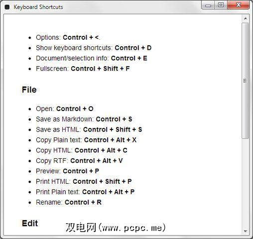 给您的第一个文档起一个名字(您可以从“选项"中关闭该名称,如果它很烦人,或者按 Enter )。 Textdown打开,显示一个“帮助"页面,其中包含您真正需要的所有说明。只需选择并删除所有内容即可将Textdown上的空白文档擦拭干净。 Textdown上的所有编写和编辑工具都可以通过键盘快捷键找到。您应该立即在块上向内存提交两个键盘快捷键: