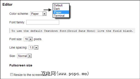 您可以转到Textdown的选项,然后选择编辑器的外观。