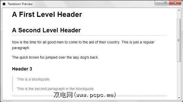按 CTRL + P 预览您的工作,这会在浏览器上打开另一个窗口。 Textdown具有实时预览功能,该功能可自动更新“预览"窗口中的更改。