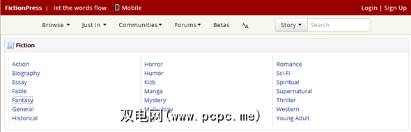 虚构的作品可以张贴在21类中的任何一个中,从动作,幻想到漫画,浪漫,年轻成人。由于旧的网站架构,导航和使用可能会变得有些困难。如果这对您来说是个大问题,那么您可能想在其他地方看看。但是,就绝对曝光而言,FictionPress拥有免费小说反馈的最大受众群体之一-如果不是 the 最大受众。