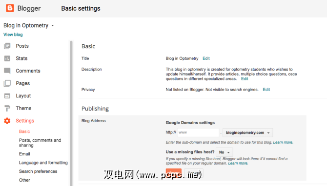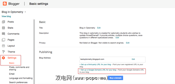 步骤3:面板上,在发布部分下,单击 +为博客设置Google域URL 。