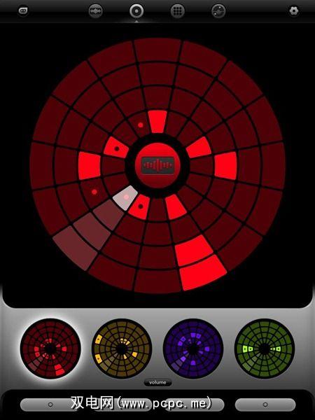 您从四个有色轮开始–红色代表鼓,黄色代表贝斯,蓝色代表打击乐,绿色代表领先。该应用程序循环播放每个圆圈上的样本,您可以随时按照高亮显示的条来准确查看圆圈的哪个部分。每隔一轮播放突出显示的部分,不播放深色的部分,并播放虚线的部分。