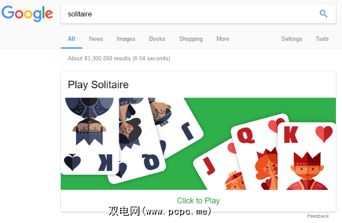 要更轻松地玩这些游戏,您只需在Google中搜索纸牌 >即可直接在Google搜索结果页面上访问游戏。