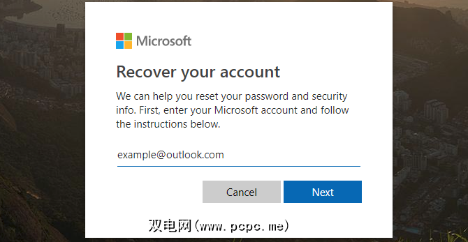 如果您使用Microsoft帐户,则重置密码很容易。转到Microsoft的帐户恢复页面,并逐步执行相应步骤以重新获得您的帐户。如果您设置了正确的恢复方法(例如备用电子邮件地址和电话号码),这是最容易的。