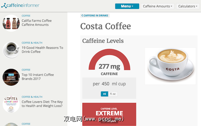 在星巴克或科斯塔咖啡订购的产品中,您能得到多少咖啡?您如何计算实际喝多少磅或克的咖啡? Caffeine Informer具备您需要的统计信息。