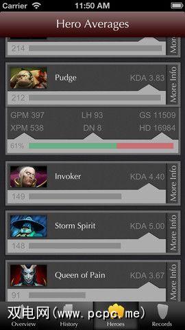 一旦在应用中,您就可以访问诸如最近的游戏,最佳英雄,KDA比率之类的数据。 , 等等。对于顽固的Dota玩家来说,这是一种分析其性能并找出最适合他们的英雄的好方法,因此,当出现重要游戏时,您就知道该选择哪一个。