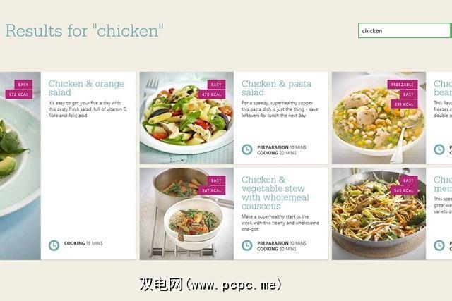 出于健康考虑-也许您正在减肥或改变生活方式-Windows 8提供了许多健康食谱档案。