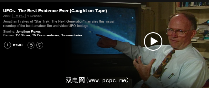 由《星际迷航》:下一代的乔纳森·弗雷克斯(Jonathan Frakes)叙述,不明飞行物:有史以来最好的证据(被记录是在录像带上的记录片,介绍了业余爱好者拍摄的最佳影片UFO录像带。