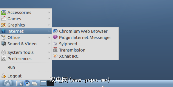 您可以看到,只有一个面板。与Windows XP相似,此面板在一些快捷方式旁边有一个菜单按钮,右侧带有时钟和底座。