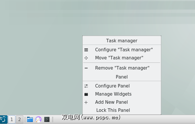 LXQt将面板的每个组件都称为小部件。默认小部件提供了将喜欢的应用程序保存到面板,在多个工作空间之间切换以及隐藏窗口以显示桌面的功能。附带了一些其他小部件,例如CPU监视器和颜色选择器。