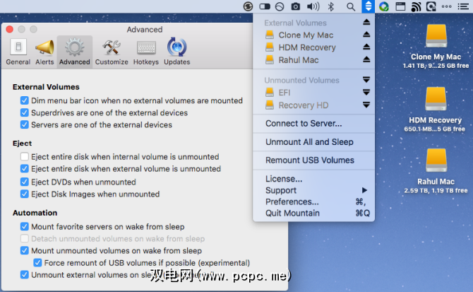 1 。 Mountain:从菜单栏管理外部驱动器