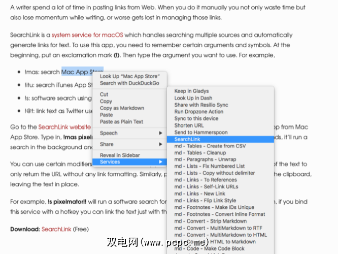 SearchLink是一项系统服务,可让您搜索多个来源和自动生成文本链接。如果您在Mac上进行书写,则与将链接手动粘贴到书写应用程序中相比,该工具可以节省您的时间。