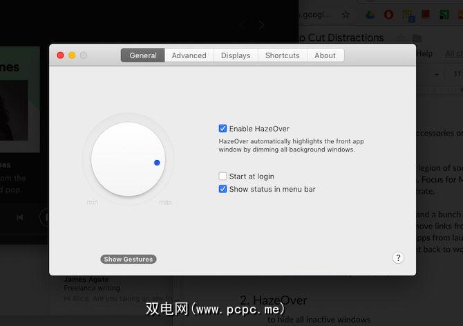即使您一次尝试执行一项任务,也可能会在Mac上打开多个窗口。其中包括您的浏览器,您的音乐应用程序,邮件应用程序,甚至可能是消息……而且,随着大屏幕显示,这些无数的窗口始终可见,使您不知所措并分散您的注意力。现在,通过突出显示活动窗口并使所有其余部分变暗来进行此操作。您可以调整昏暗背景的颜色和强度,以减轻夜间工作时眼睛的负担。此外,您可以将应用设置为在使用多台显示器时集中显示在活动屏幕上。