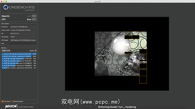 MAXON的Cinebench通过两个简单的测试来分析Mac的GPU和CPU。该工具具有一定的合法性,因为诸如Iron Man 3和Life of Pi之类的流行电影已经使用MAXON软件来创建3D图形。