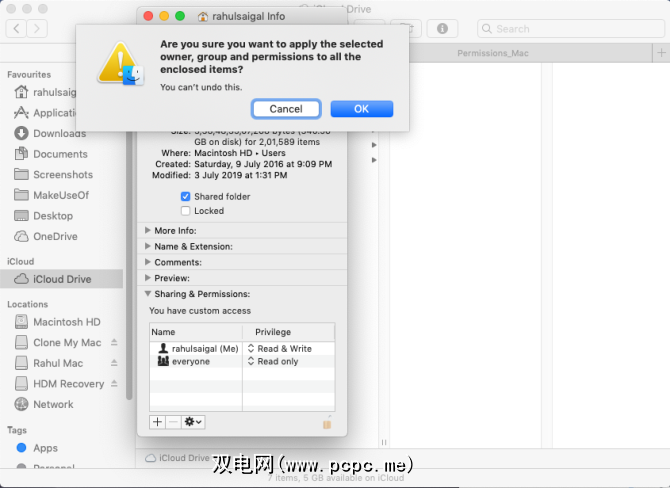 点击确定以确认操作。更新的权限将通过您的主文件夹传播。