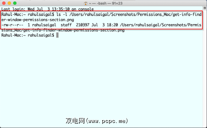 ls -l "path to your file"后面的字符破折号是小写L ,表示文件的所有权和权限。在命令行上,读取权限的缩写为 r ,而写入权限为 w ,执行权限为 x 。