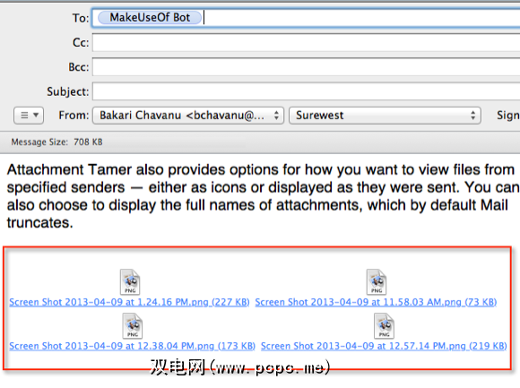 如果内存能够正确提供服务,则默认情况下,当您在邮件中添加附件时,它不会将文件显示为图标,在您尝试撰写或阅读邮件时可能会很烦人。 Attachment Tamer($ 14.99)是一个方便的功能,用于控制您如何在Mail中显示附件。