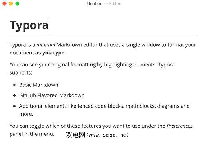 如果您不喜欢大多数Markdown编辑器的两窗格方法,请查看Typora。这款编辑器使用无缝实时预览而不是单独的窗口,使Markdown的工作在视觉上更具吸引力。键入时语法会转换为带格式的文本,因此您所看到的就是所得到的。